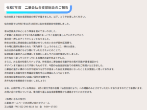 | 11月16日 | 仙台支部総会 | 二華会館 二華ホール | ||