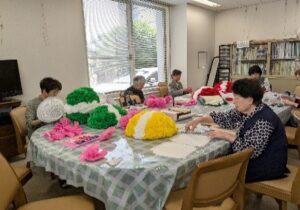 ▼部員、有志による七夕飾りの作業風景