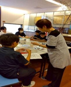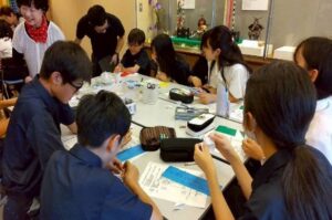 折り方などを生徒同士で教え合う微笑ましい交流が見られました。